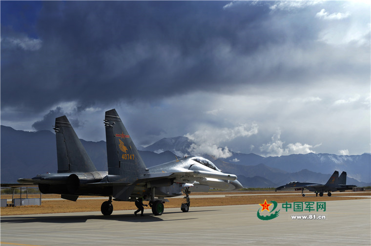 风雨过后,远处的山巅聚起积雪。经过机务人员的最后一道检查,战机再次滑出准备升空。