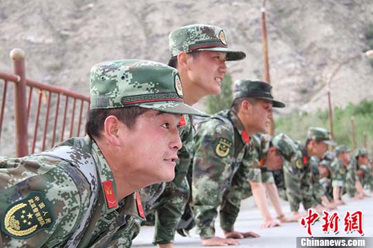 负重前行结束,还要完成俯卧撑、仰卧起坐、深蹲“三个一百”活动。 姚方 摄