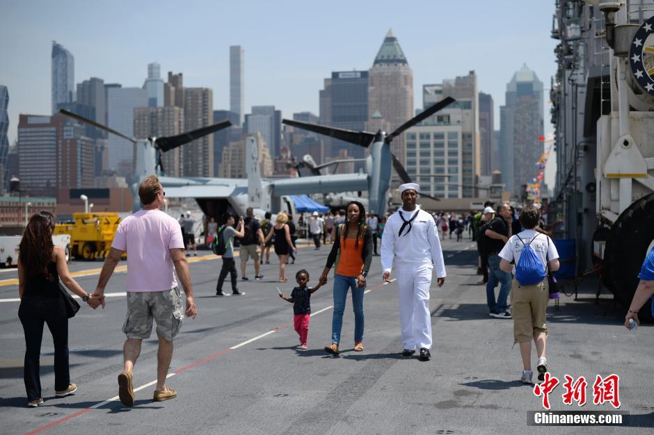 当地时间5月26日,美国纽约,民众参观巴丹号黄蜂级两栖攻击舰。第28届纽约舰队周5月25日正式开始,民众有机会参观美国海军现役两栖攻击舰、驱逐舰、船坞登陆舰等舰船。廖攀 摄