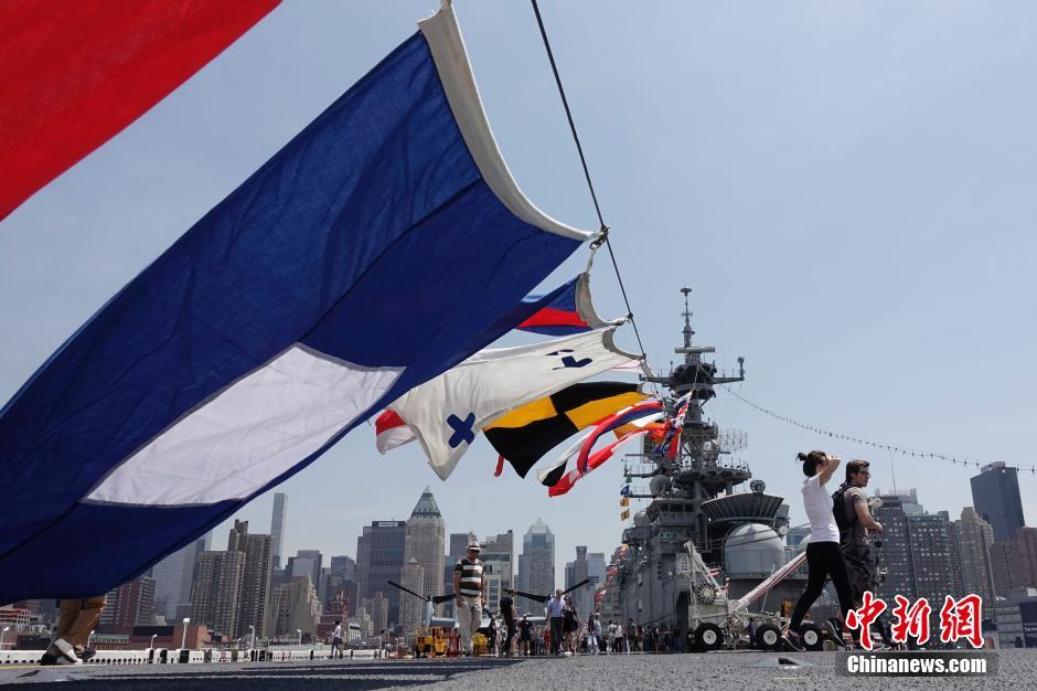 当地时间5月26日,美国纽约,民众参观巴丹号黄蜂级两栖攻击舰。第28届纽约舰队周5月25日正式开始,民众将有机会参观美国海军现役两栖攻击舰、驱逐舰、船坞登陆舰等舰船。 廖攀 摄