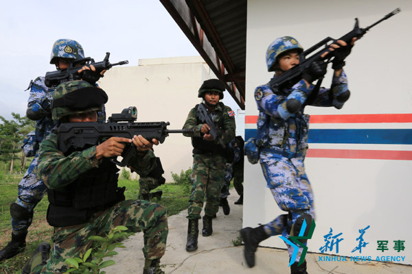 演示完毕后,中泰双方参训队员混编成数个战术小组,对模拟房屋进行搜索。显然,泰方队员对中方演示的几种切角方式产生了浓厚兴趣,训练起来也格外用心。围绕战术细节,双方参训队员进行了深入交流。