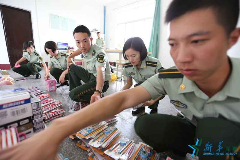 公安边防部队高等专科学校边防指挥系九队学员为云南孟连县困难儿童购买文具等节日礼物,送去温暖。(林珉正、王威皓)