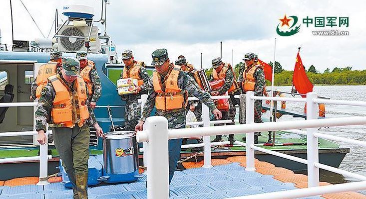 洪水围困珍宝岛 官兵水中巡边升国旗