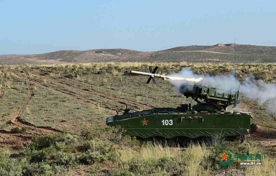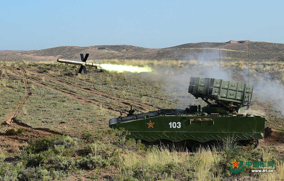 6月初,南京炮兵学院廊坊校区组织反坦克导弹专业应届毕业学员在陆军某训练基地进行跨区综合演练。曾经在2014“上合组织”联合军演和抗日战争胜利70周年阅兵盛典中引起广泛关注的AFT10(红箭10)导弹武器系统,快速占领发射阵地,连续发射多枚导弹,精确命中实体靶标。让我们一起来看看记者在现场近距离拍摄到的导弹出筒和飞行的连续画面吧!(吴苏琳摄影报道)