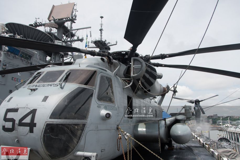 图为CH-53E特写照,机头上的“秃鹰”(Condors)绰号显示该机隶属于HMH-464重型直升机中队。CH-53E是CH-53系列中的现役主力机型,于1971年3月首飞,1981年服役。其最大巡航速度每小时278千米,标准航程1000千米,最大起飞重量33吨。