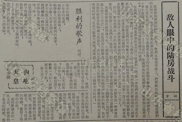 1941年5月10日,《大众日报》登载梁山歼灭战中俘虏日军对陆房突击战的供述。