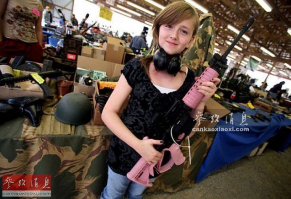 资料图片:一位美国儿童与AR-15步枪合影。