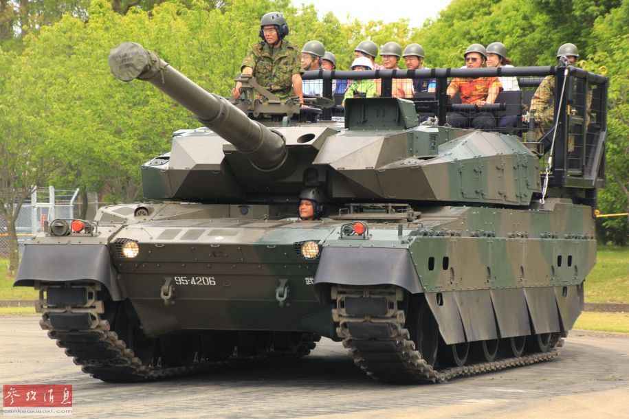 2016年6月,日本长冈,在自卫队炮兵学校开放日上90式和10式主战坦克化身“观光车”载访问者观光。