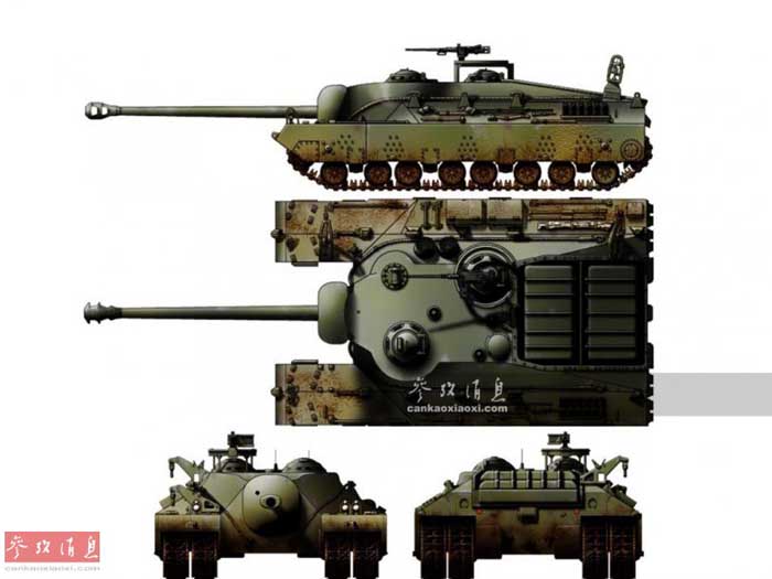 T28的历史可追溯到1944年,当时的项目代号是“重型坦克T28”,该车后于1945年3月投产。第一个铸造前车体于当年7月20日完成,并于8月完成车体总装。T28全长11米,全宽9.8米,全高2.8米;战斗全重95吨,其正面装甲厚度305毫米,用当时主流的大口径坦克炮或反坦克武器都无法击穿。图为T28重型坦克多视图。