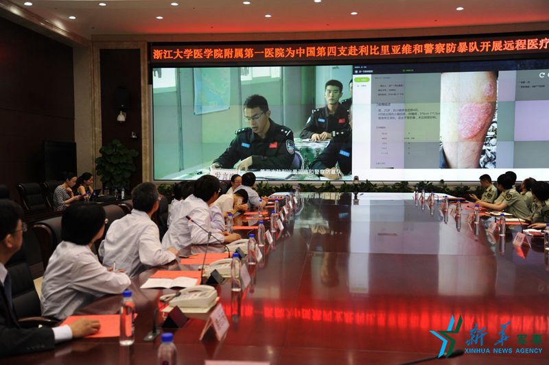 由中国第四支驻利比里亚维和警察防暴队、浙江边防总队和浙江大学医学院附属第一医院共同发起的“警民远程医疗协作”日前启动。6位医疗专家通过远程视频系统,为远在利比里亚的患病队员进行会诊。