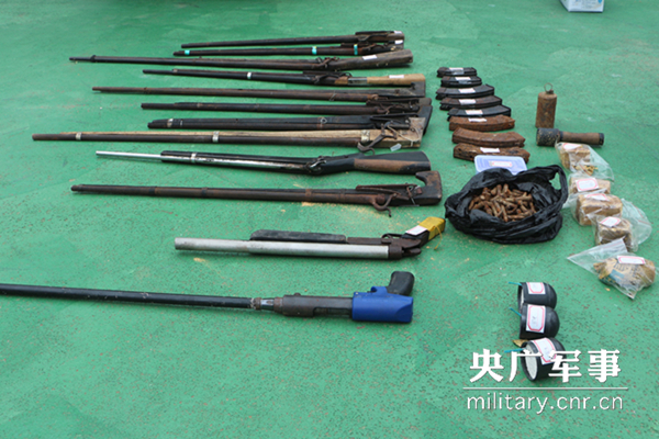 滩散边防缴获的枪爆物品