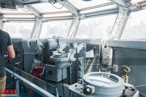 这里是勇猛号的航海舰桥,可见各种尺寸不一的罗盘仪和其他导航设备。