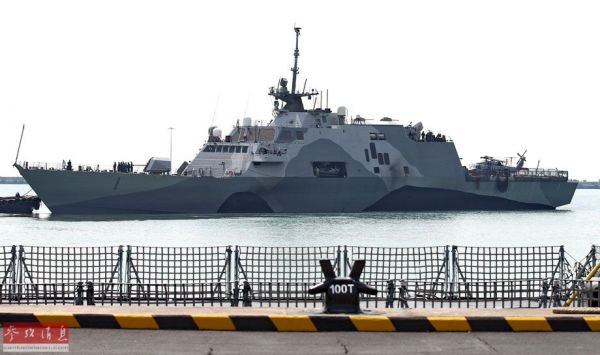 资料图:美国海军“自由”号濒海战斗舰抵达新加坡樟宜海军基地。