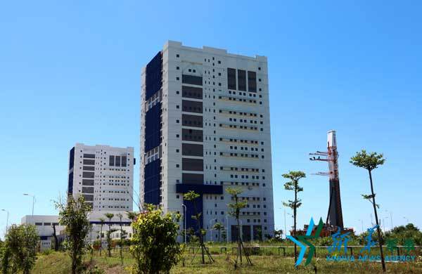 长征七号与长征五号垂直总装测试大厅。新华社记者陈曦 摄