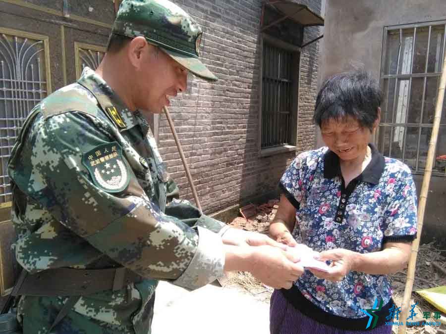 武警连云港支队官兵25日10时许在江苏阜宁执行抢险救灾任务中,帮助戚桥镇邵湛村1组王正银大娘在倒塌的房屋中,挖出了她存放在衣柜内的15500元现金。雷卓 摄