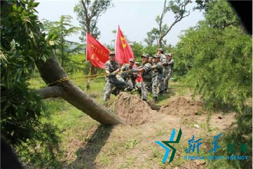 6月25日上午盐城海防营官兵在阜宁金沙湖街道帮忙恢复秩序。