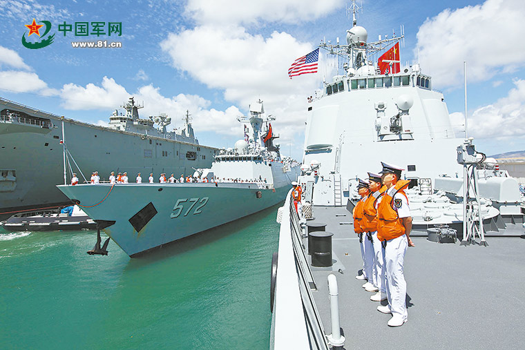 经过15天的航渡,参加“环太平洋-2016”演习的中国海军舰艇编队5艘军舰于当地时间6月29日(北京时间6月30日)抵达美国夏威夷珍珠港。
