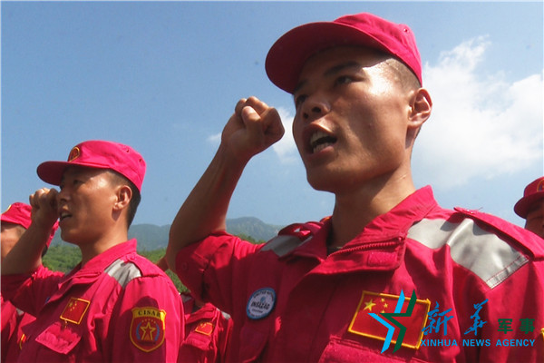 中国国际救援队队员重温入党誓词(王路宽摄)