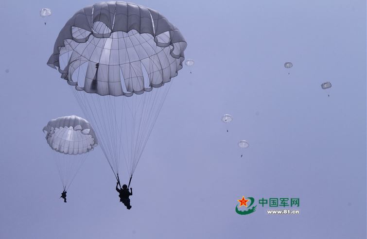 7月3日,空降兵某师在豫北某地组织大规模伞降训练,锤炼官兵空降作战本领。