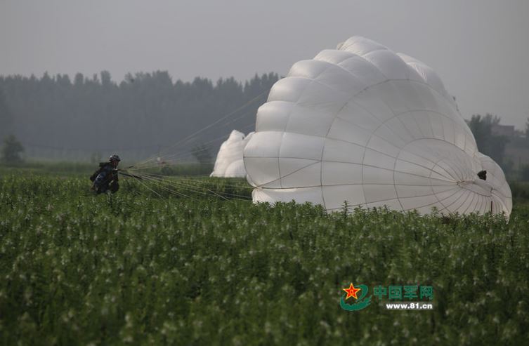中国空降兵在豫北地区组织大规模伞降训练