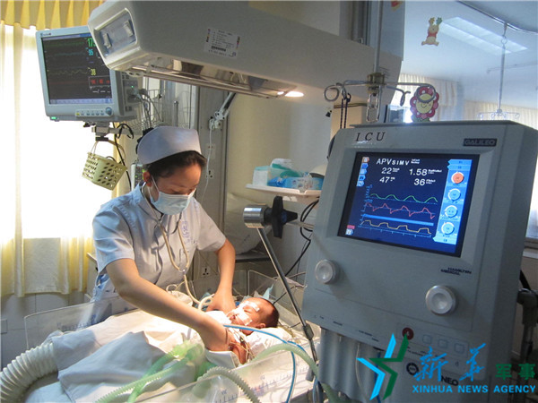 心血管外科ICU护理人员正在护理术后患儿。向可翠 摂