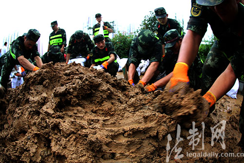 江苏南京边防官兵奋力抗洪抢险 党员冲在第一线