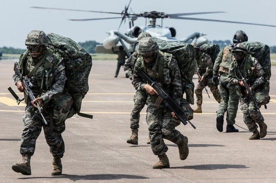 韩国海军陆战队消息称,6月27日至7月14日,韩美两军在庆尚北道浦项市联合举行旨在打击朝鲜核心设施的空地联合对抗演习。据报道,此次,韩国海军陆战队快速机动部队800名兵力和派驻日本冲绳的美国海军陆战队500名兵力参加了演习。