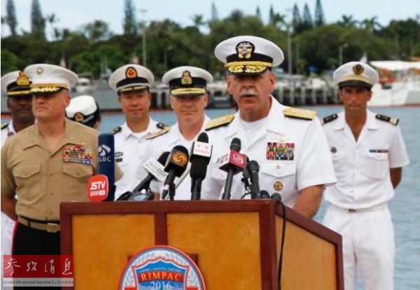 美国太平洋舰队司令斯科特·斯威夫特5日就环太军演开幕举行记者会(美国《星条旗报》网站)