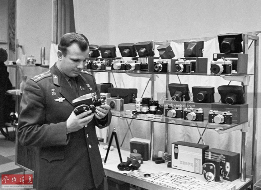 苏联宇航员尤里•加加林在商店购买电影摄影机。