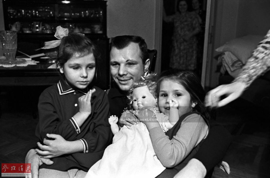 宇航员尤里•加加林与女儿叶莲娜、加林娜。