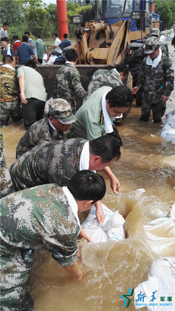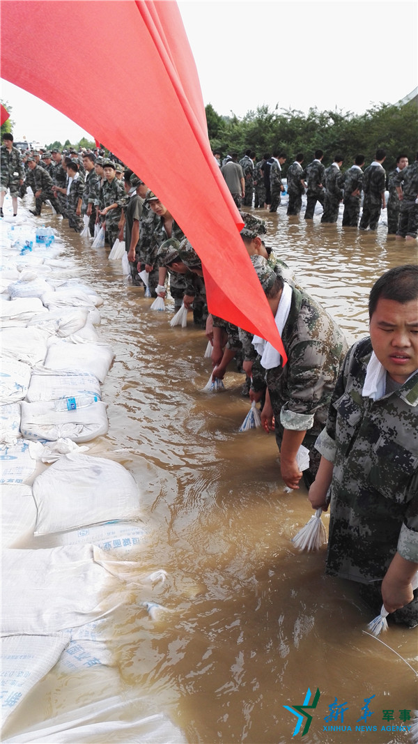在军分区指挥协调下,7月11日12时起,牧野区、凤泉区、红旗区人武部出动干部职工和民兵300余人,车辆50余台;驻新54集团军某团出动300名官兵,车辆10台,奔赴一线。新乡军分区司令员万丽华、参谋长张键全程一线指挥,带领官兵跳入齐腰深的水中肩扛手抬,抢险围堰。