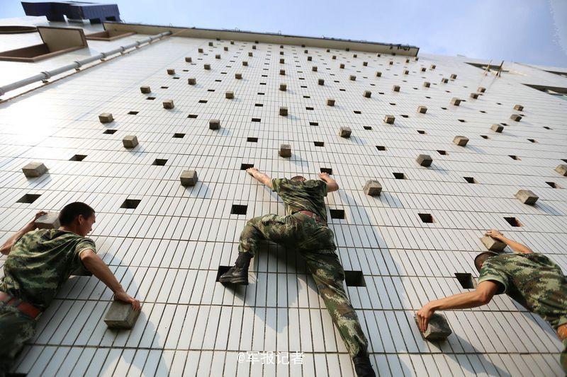 【墙上显真功!南粤尖兵举行攀爬竞赛】7月12日,武警广东边防总队机动支队迎来了一场攀爬大竞赛,有效锤炼和提升单兵作战能力。4层高的攀登楼,距离地面垂直距离为14米,攀爬在克服自身重量的基础上还要充分调用手臂的拉力和双腿的蹬力,一次攀登下来,两名战士的作训服已然湿透。(廖国勇)