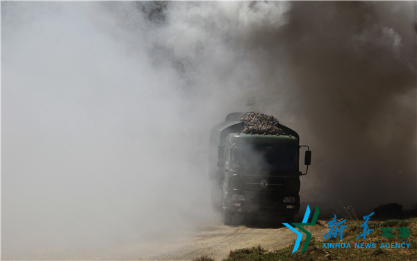 图为车辆编队快速通过染毒地带。(吴凯波 摄)