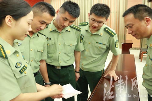 图为一线检查员围绕这个站近期查获的变造出入境证件伪假点进行研讨交流