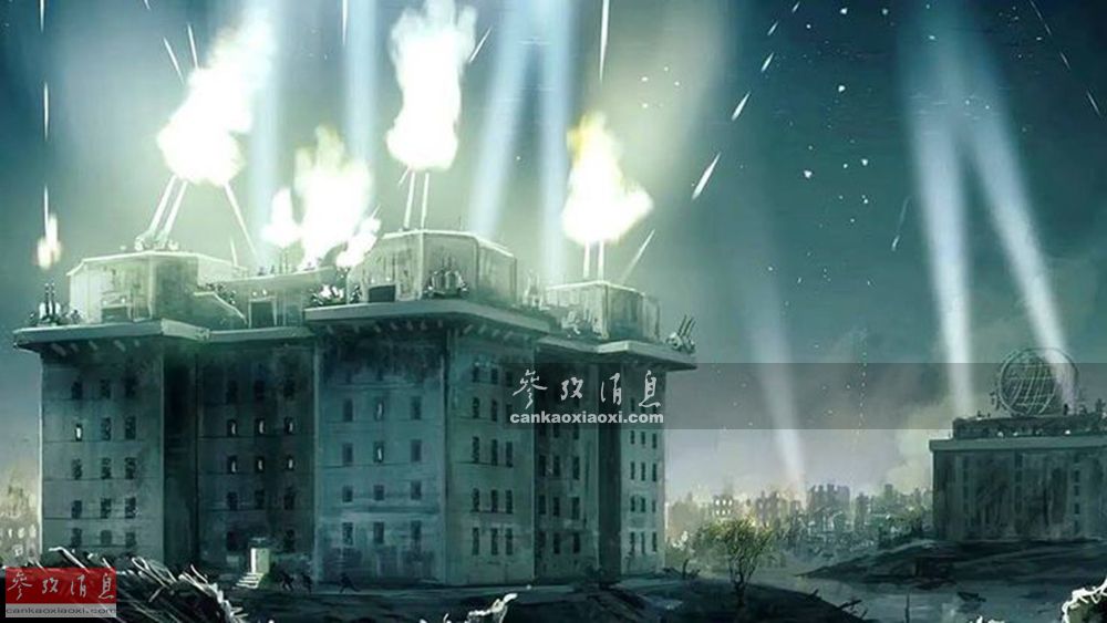 柏林的高射炮塔在纳粹德国的本土防空中扮演着重要角色。在盟军轰炸机编队飞来之时,高射炮塔将实施“弹幕”战术:即在3-4秒之间,所有高射炮以最快速齐射,打出一个边长约240米的正方体“弹幕”拦阻在盟军轰炸机面前,以造成最大程度伤害。图为一张描绘防空塔作战情况的艺术画,可见其密集的防空火力。