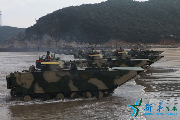 2014年9月24日,濒海某驻训点,战车抢滩登陆训练。