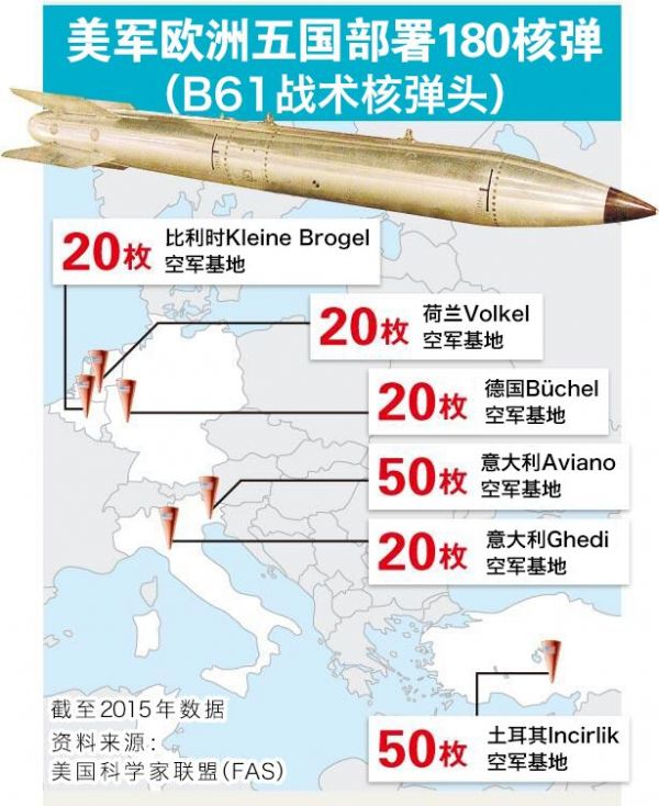 美军欧亚五国部署180核弹。(图片来源:香港《明报》网站)