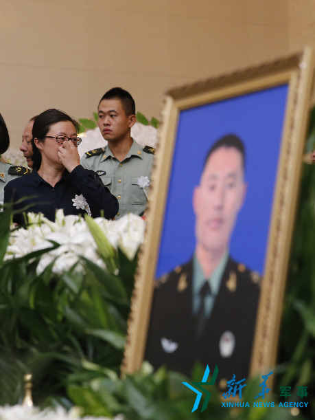 烈士杨树朋的妻子在遗体告别仪式上看丈夫最后一眼。新华社记者 殷刚摄