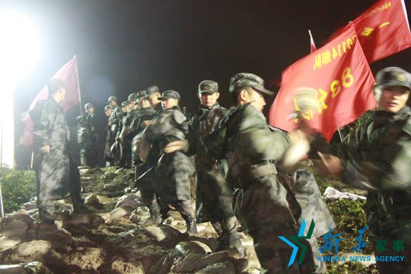经过8个小时连续奋战,官兵构筑起2道防洪墙,有效控制了险情,为京港澳高速及时开通争取了宝贵时间。