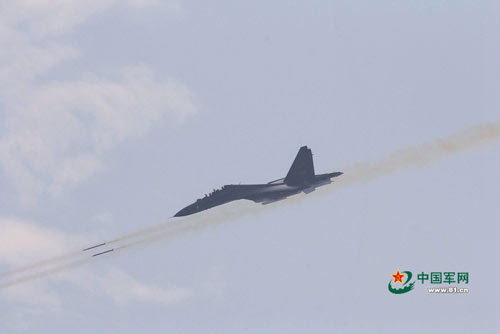 图为某型战机向地面目标发射火箭弹。张海深 摄