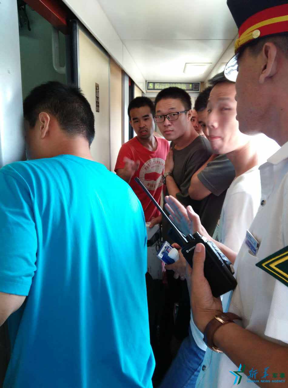 随后,学员们协力把男子抬到5号车厢,腾出卧铺当病床。有学员拿出随身携带的听诊器、血压仪和温度计,还有学员打来热水。他们相互配合,有条不紊,迅速完成了查体,并稳定住了男子情绪。