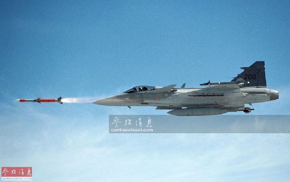 资料图:JAS-39”鹰狮“战机发射AIM-120导弹。
