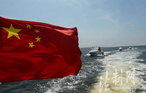 图为7月26日,秦皇岛边防支队官兵在海上编队巡逻