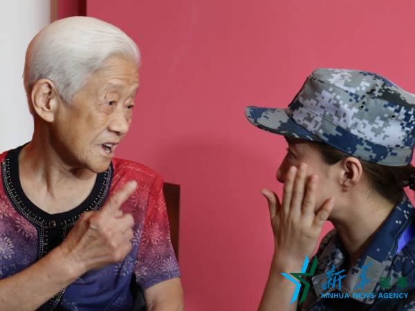 志愿军女护士王清珍与《三八线》护士李长清的扮演者方川交流。
