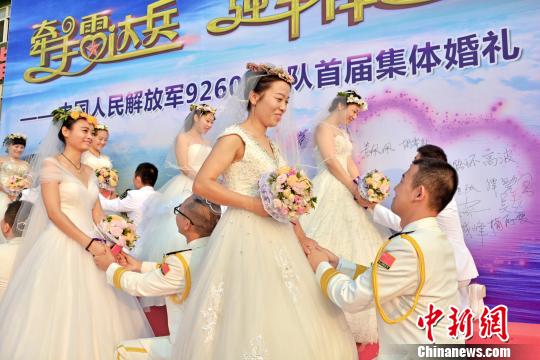 “通过举办集体婚礼,让家属更理解和支持军人的工作,部队官兵能够集中精力练精兵、谋打赢,全身心地投入到改革强军征程中。”仪式上,该旅旅长王秀联对记者说。新郎单膝跪地向美丽的新娘求婚。