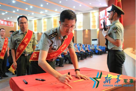 新华社成都8月1日电 (黄宝峰、樊净芷)8月1日上午,西部战区陆军驻川某兵种训练基地举行隆重的仪式,在嘹亮的军歌声中,33名退役军官逐一向军旗敬礼,庄严地在军旗上写下自己的名字,并与军旗拥别。