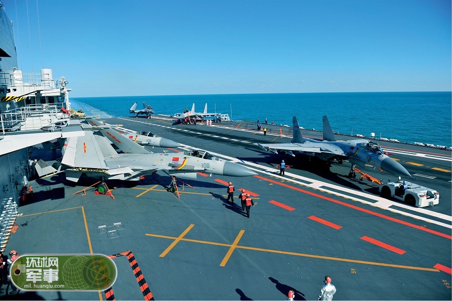 辽宁舰航母10架舰载机同时现身