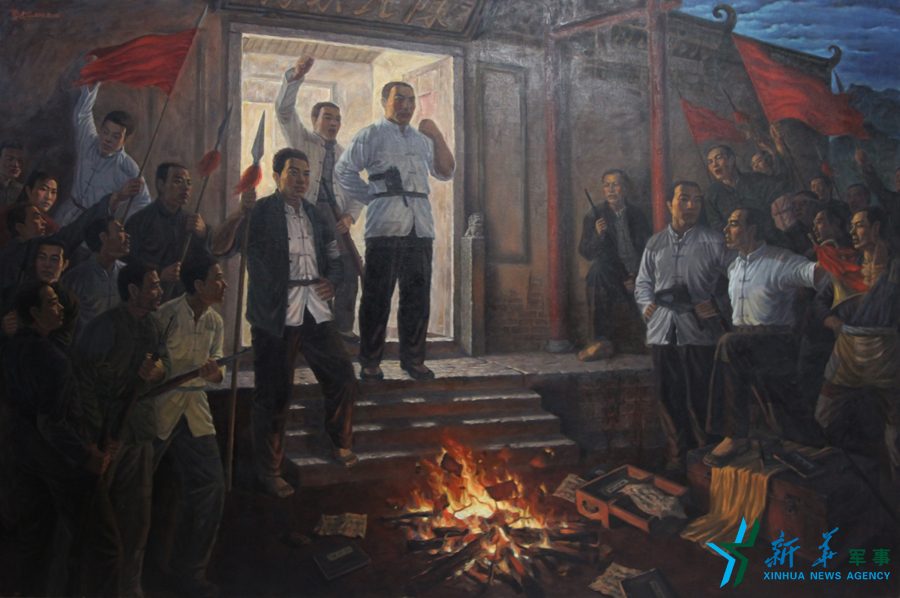 资料图片:1932年9月初,中共福安县委在福安兰田举行武装暴动,成立闽东工农游击第一支队。这是反映兰田暴动的油画。