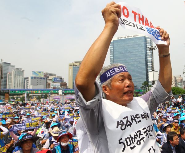 资料图:韩国民众举行集会反对部署“萨德”系统 。新华社记者 姚琪琳 摄