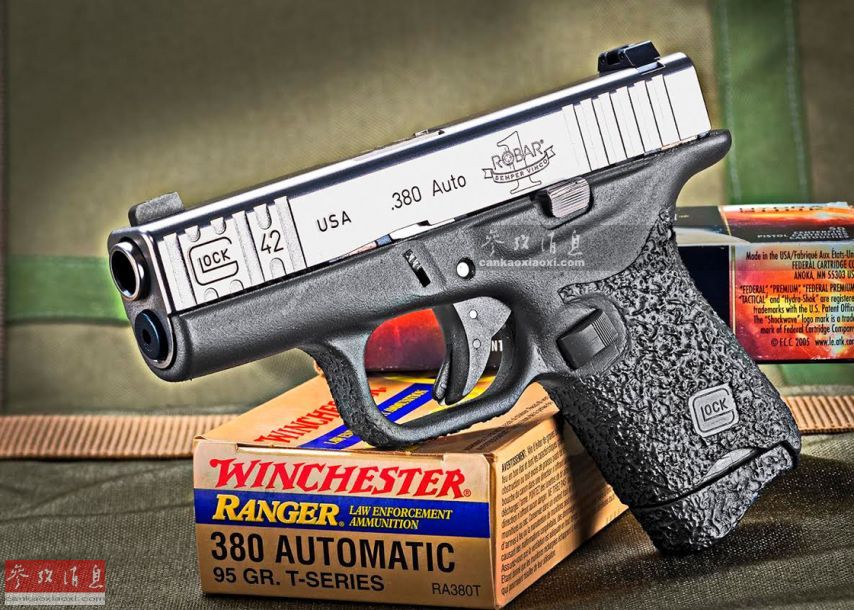 奥地利格洛克42袖珍手枪,是格洛克系列手枪中尺寸最小的一款,全枪长仅有151毫米,空枪重380克,可发射.380ACP手枪子弹,弹匣容量6发。